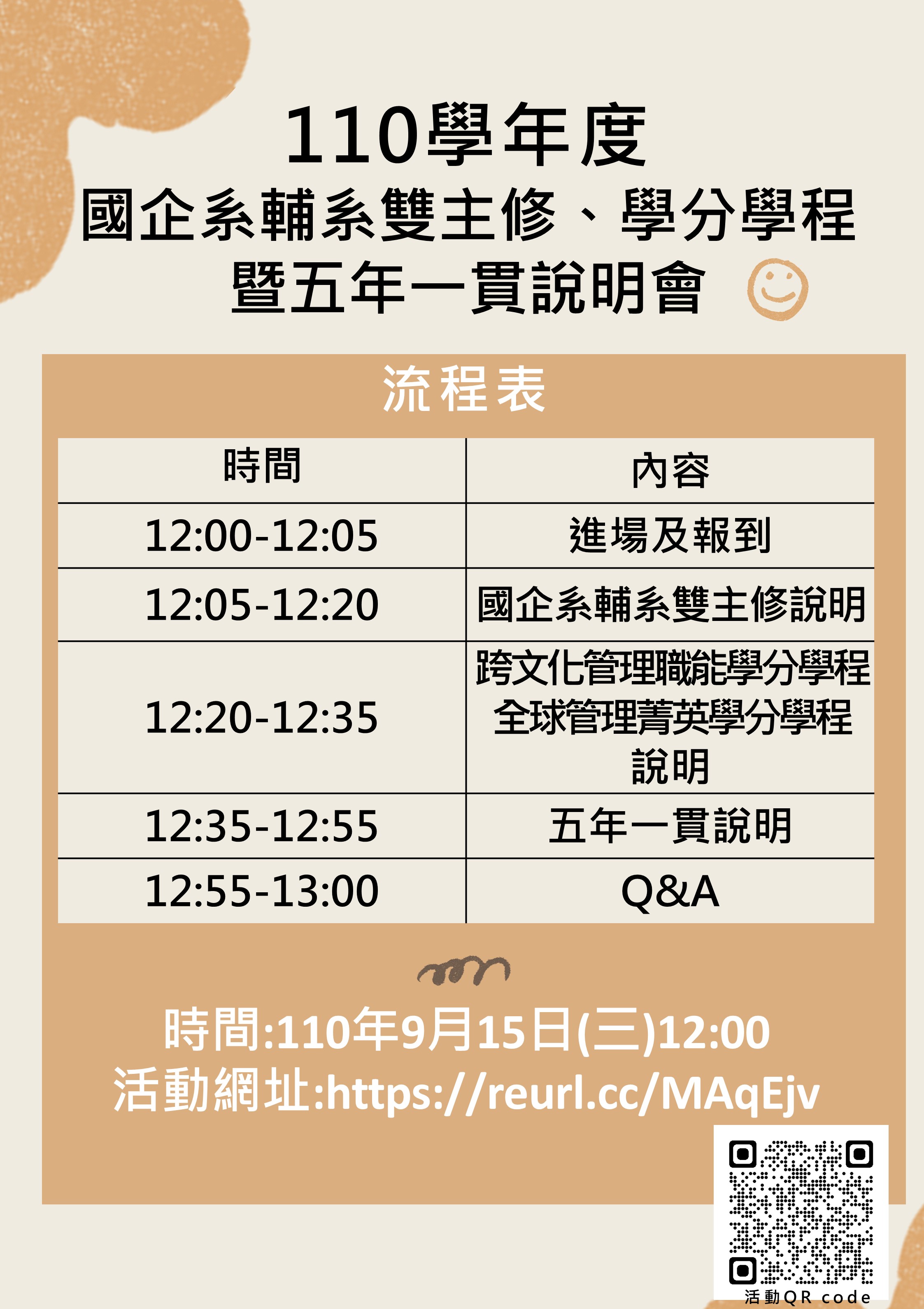 想了解更多國企系輔系雙主修、學分學程及五年一貫訊息的同學,