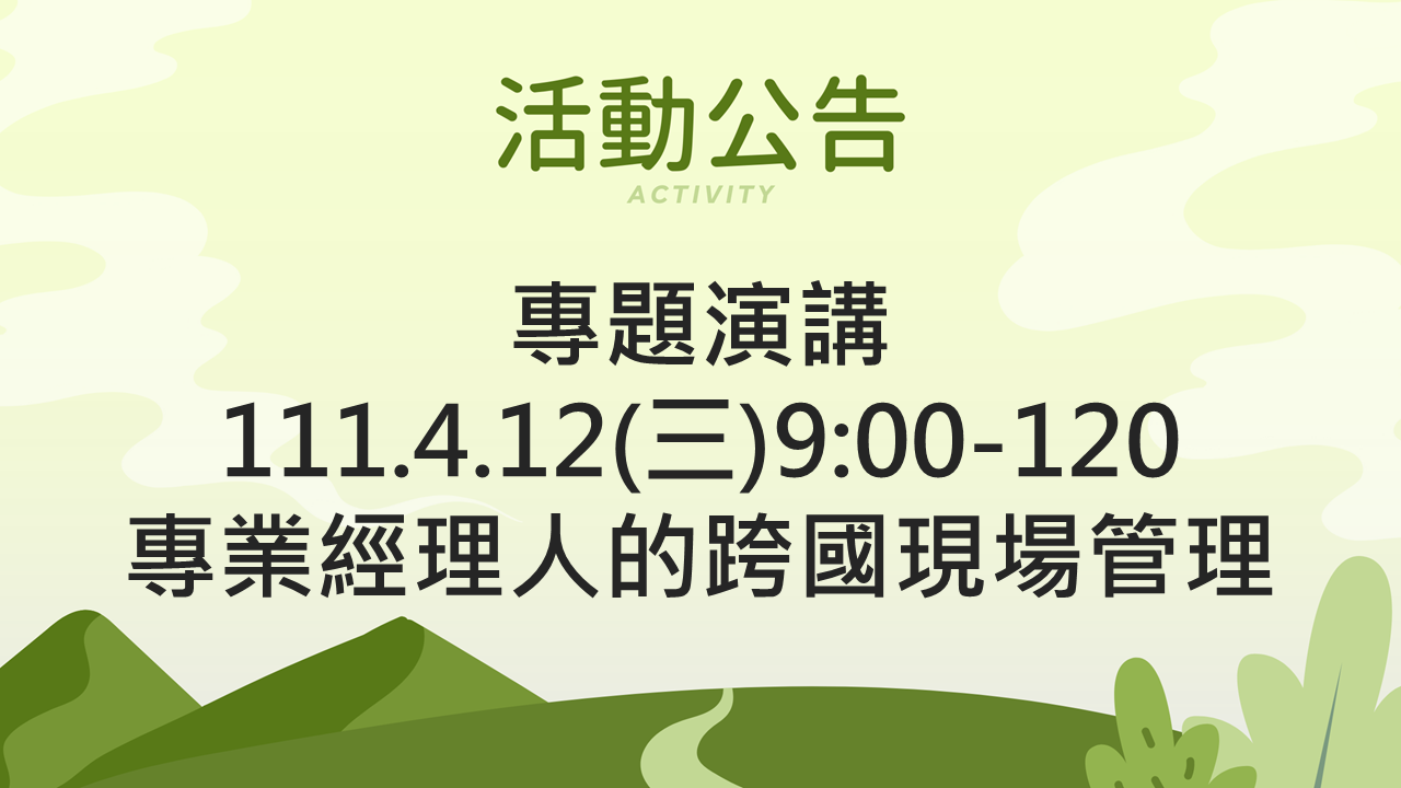 【專題演講】111.4.12(三)9:00-120:專業經理人的跨國現場管理