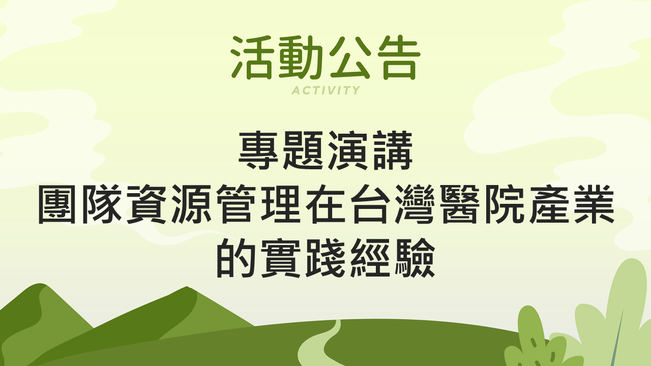 【專題演講】團隊資源管理在台灣醫院產業的實踐經驗