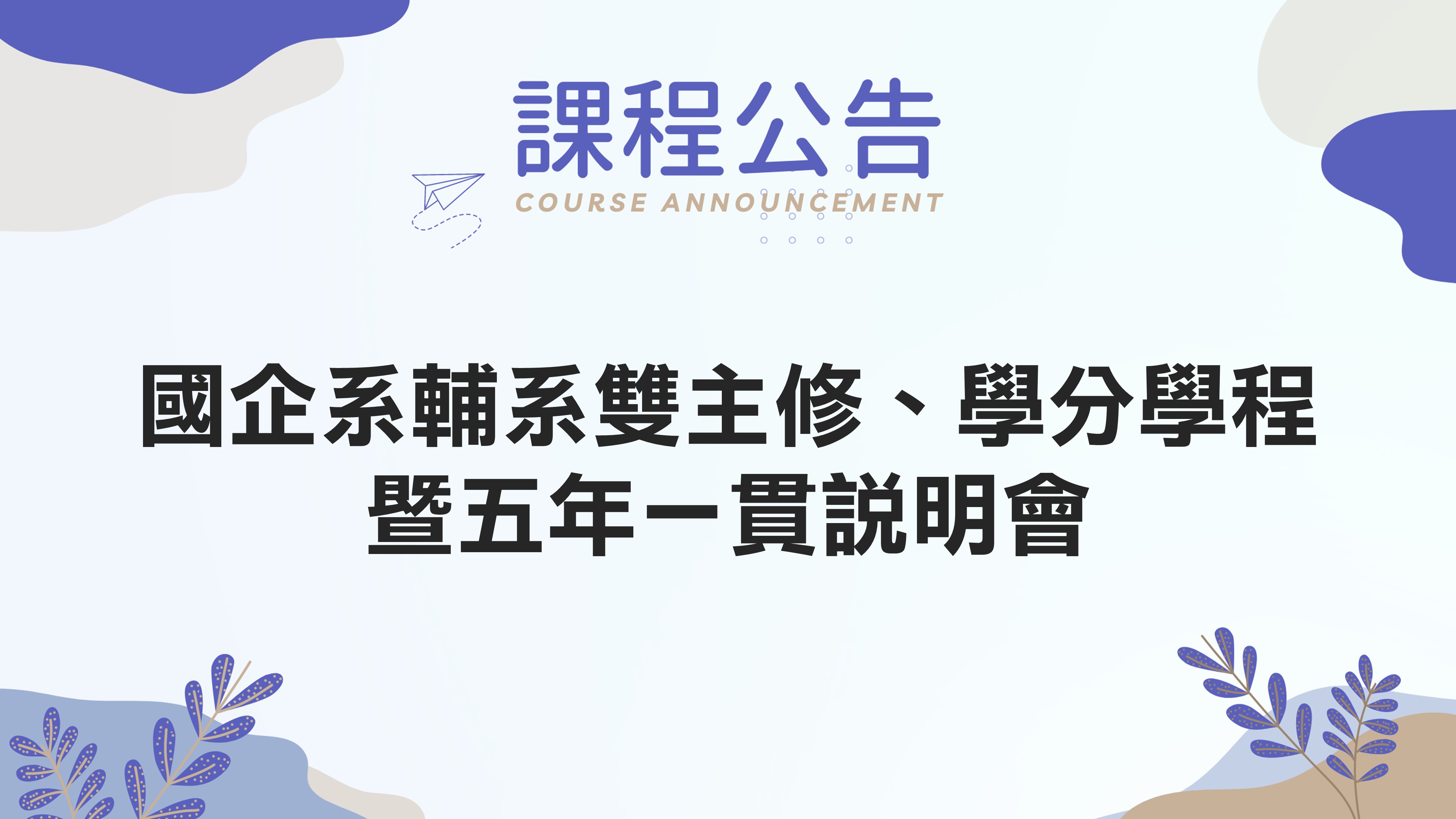 國企系輔系雙主修、學分學程 暨五年一貫說明會