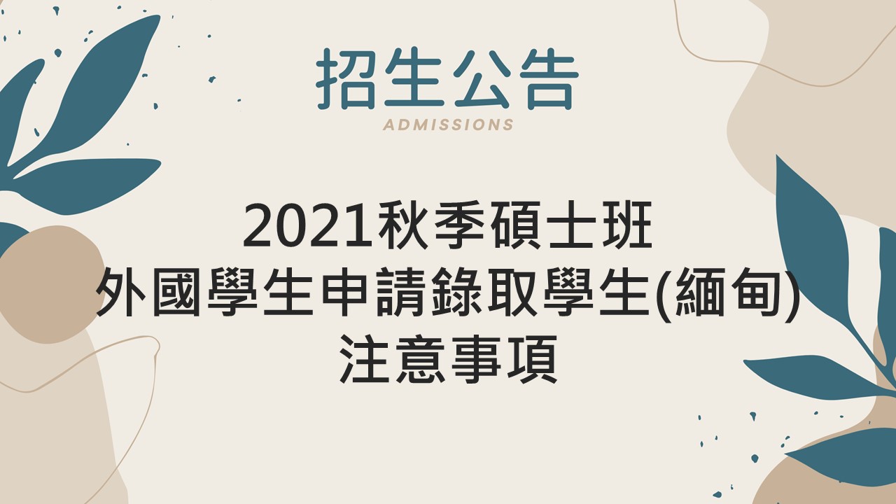 2021秋季碩士班外國學生申請錄取學生(緬甸)注意事項