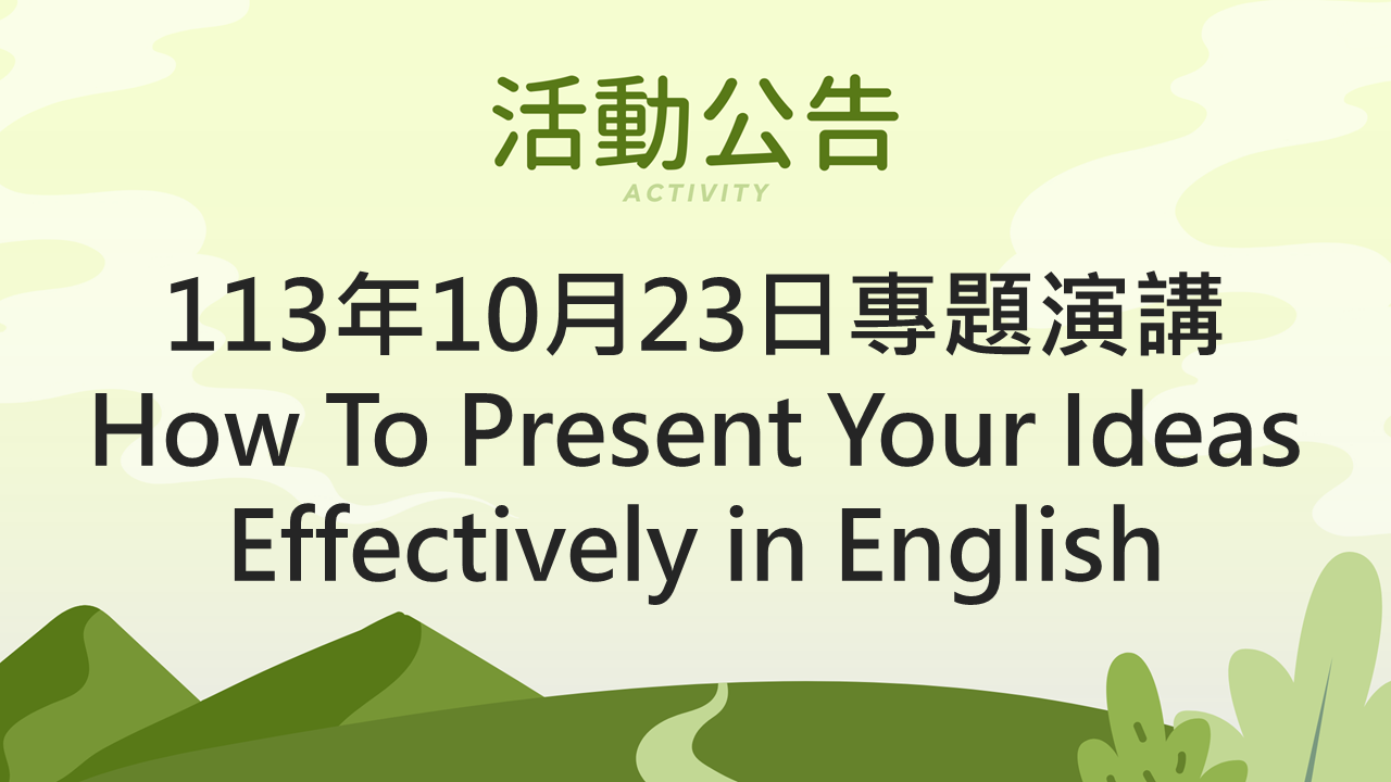 113年10月23日專題演講: How To Present Your Ideas Effectively in English