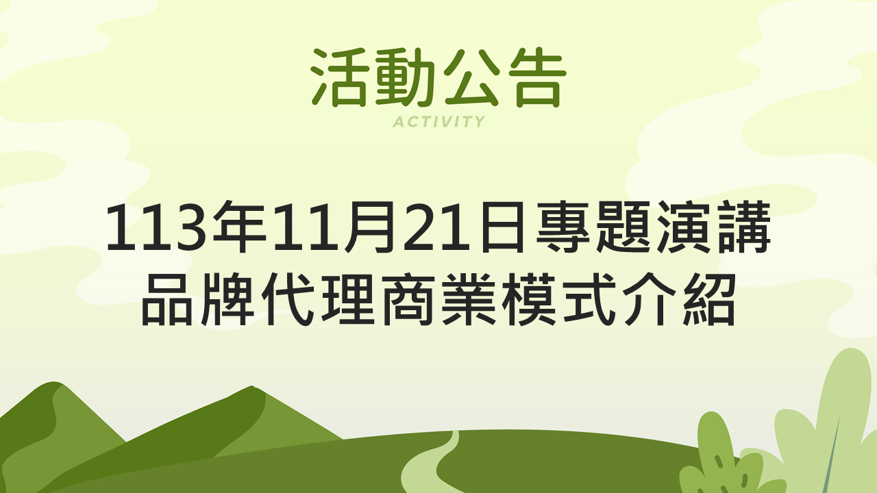 113年11月21日專題演講: 品牌代理商業模式介紹