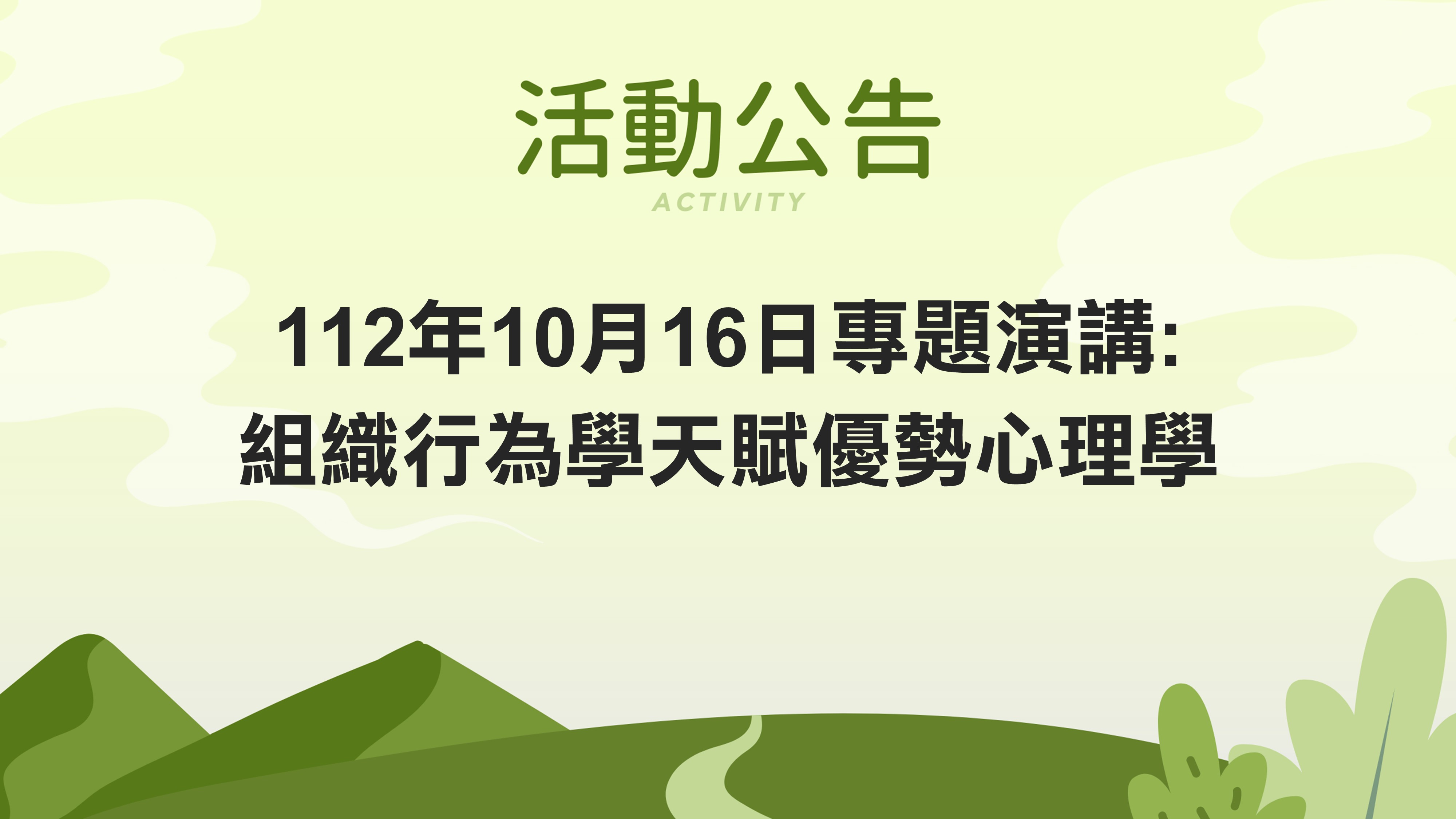 112年10月16日專題演講: 組織行為學天賦優勢心理學