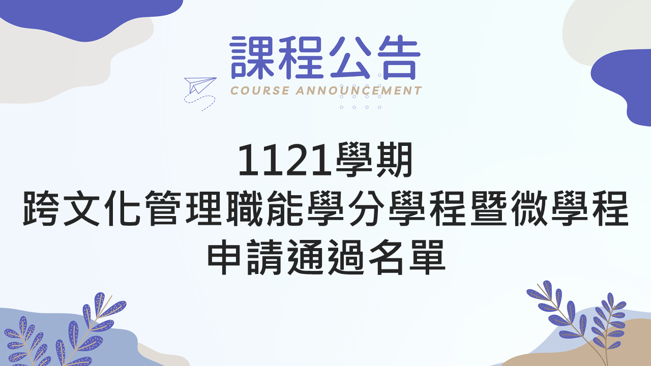 1121學期跨文化管理職能學分學程暨微學程申請通過名單