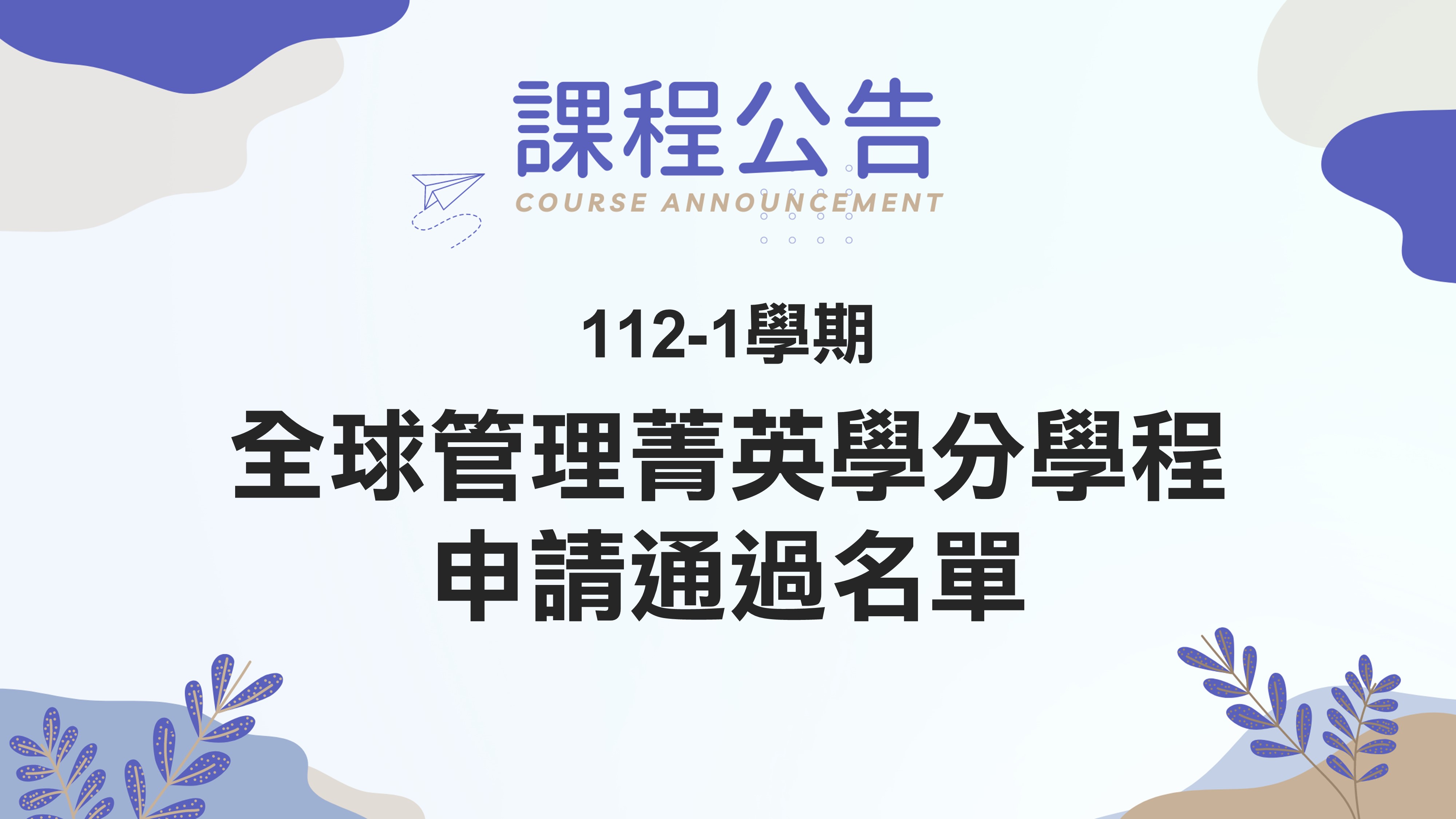 1121學期全球管理菁英學分學程申請通過名單