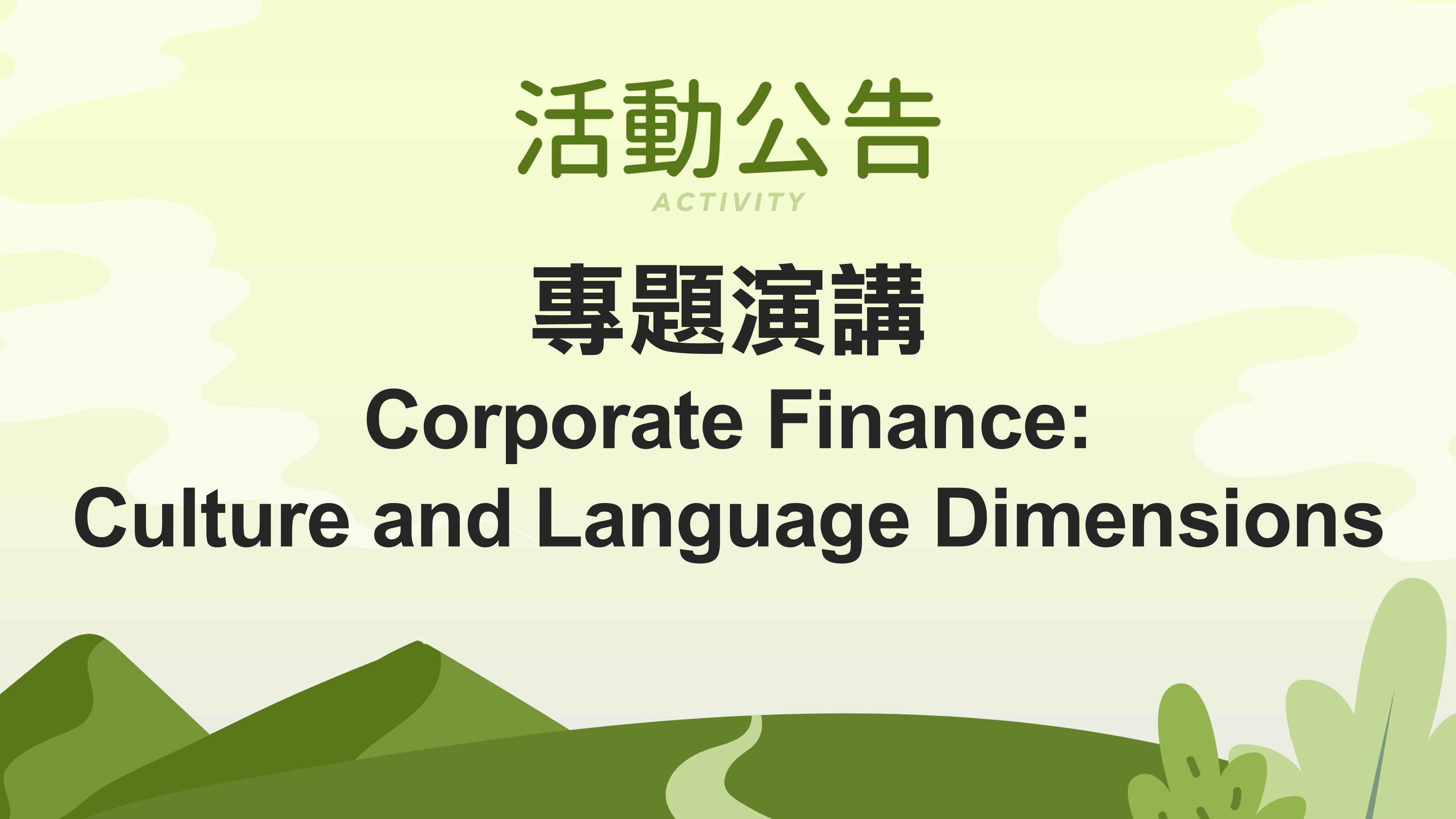 【專題演講】Corporate Finance:Culture and Language Dimensions