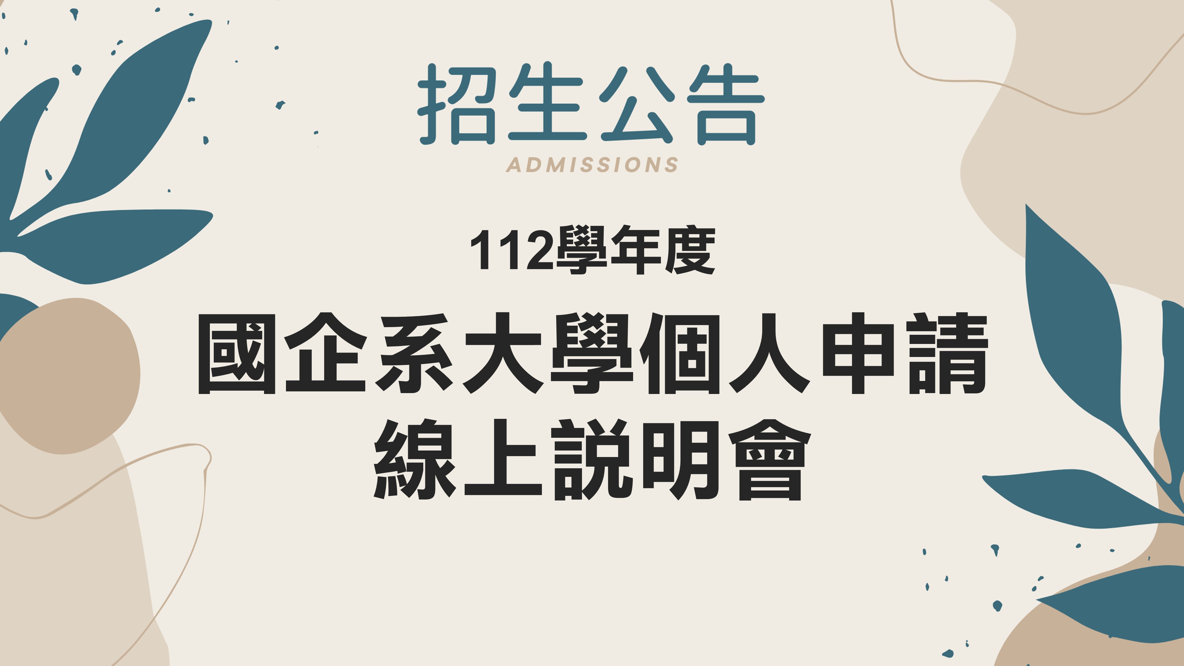 暨大國企系112學年度大學個人申請入學審查及甄試資訊