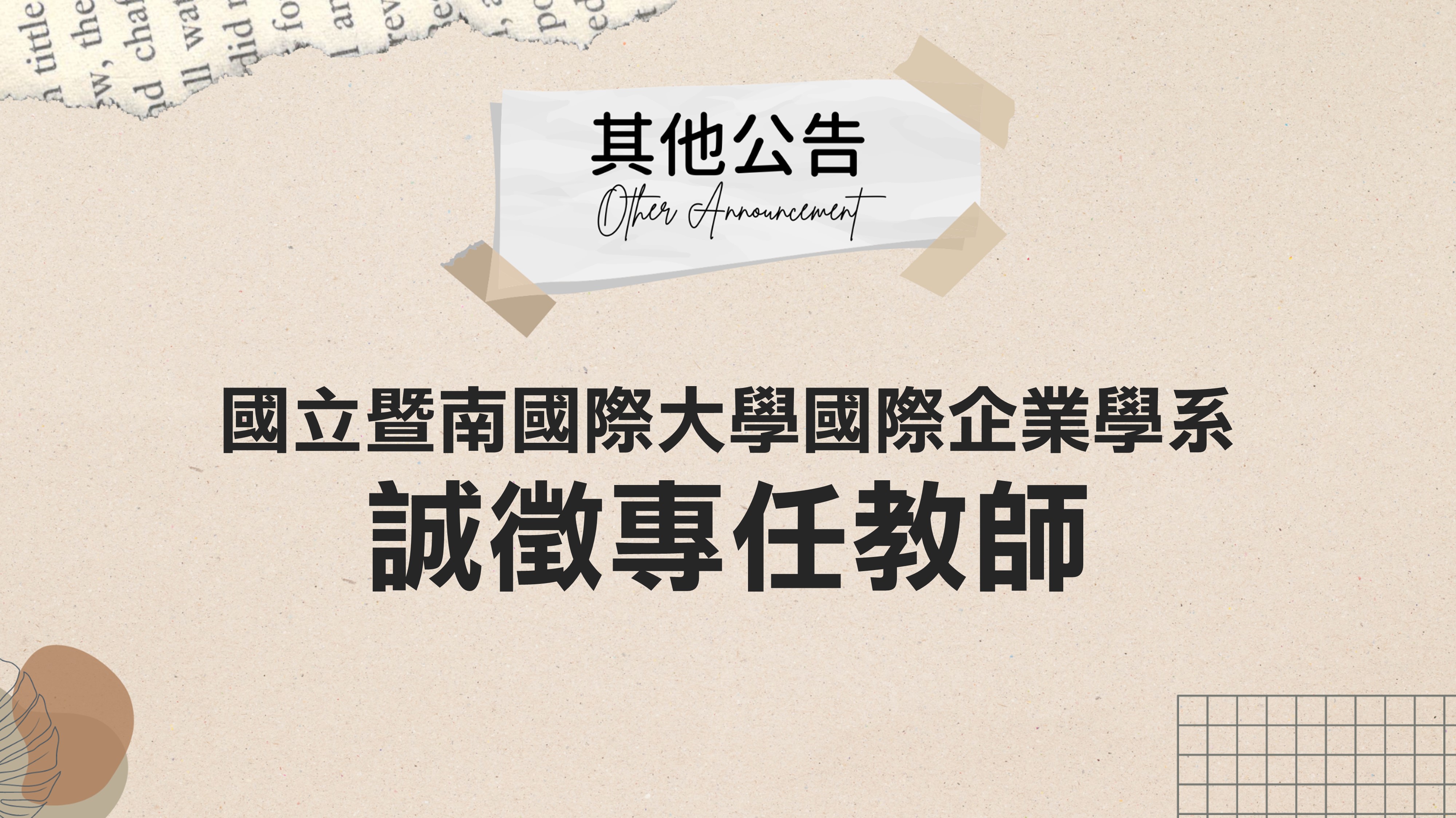 國立暨南國際大學國際企業學系誠徵專任教師