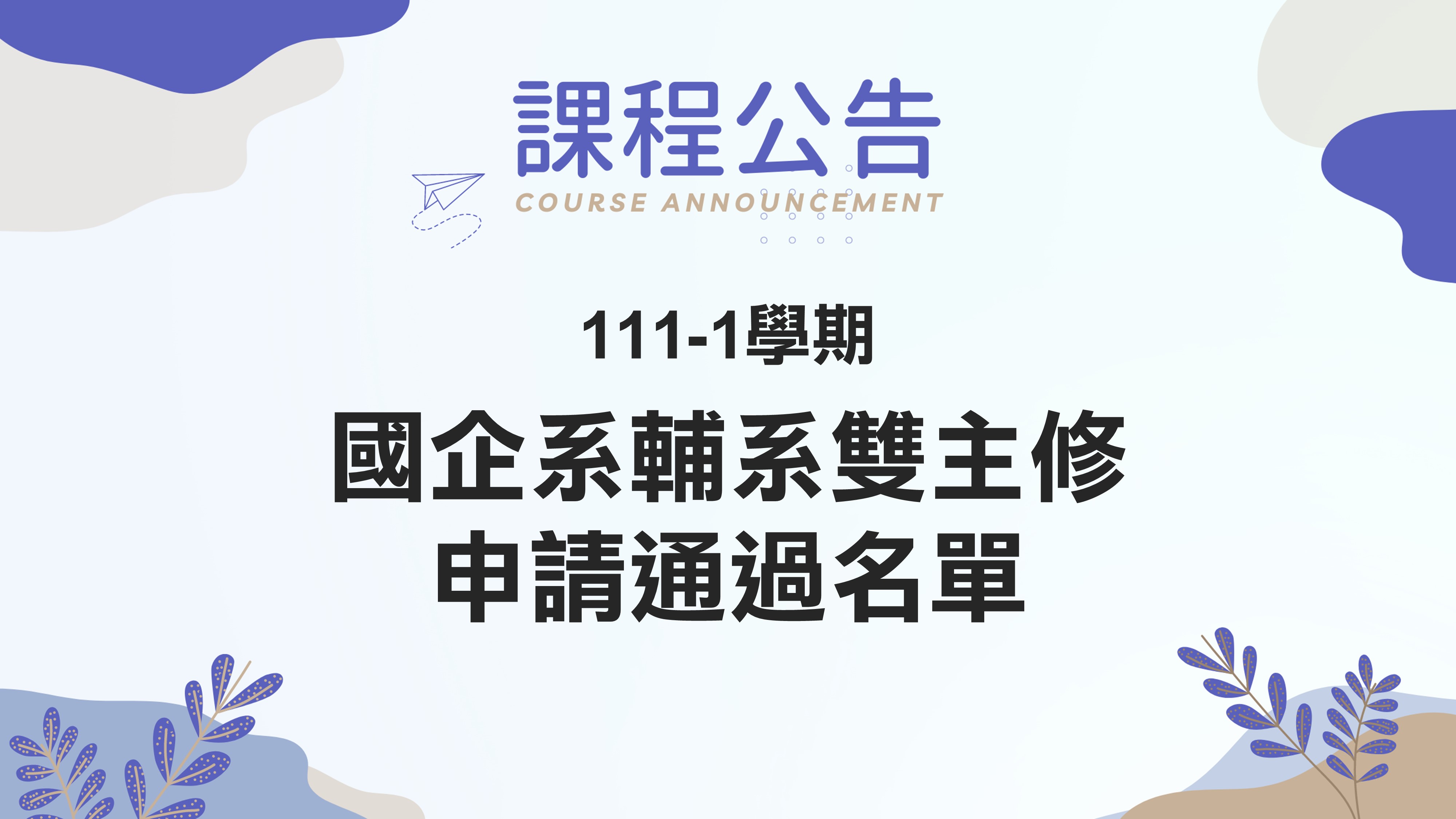 國企系輔系雙主修、學分學程暨五年一貫說明會及申請