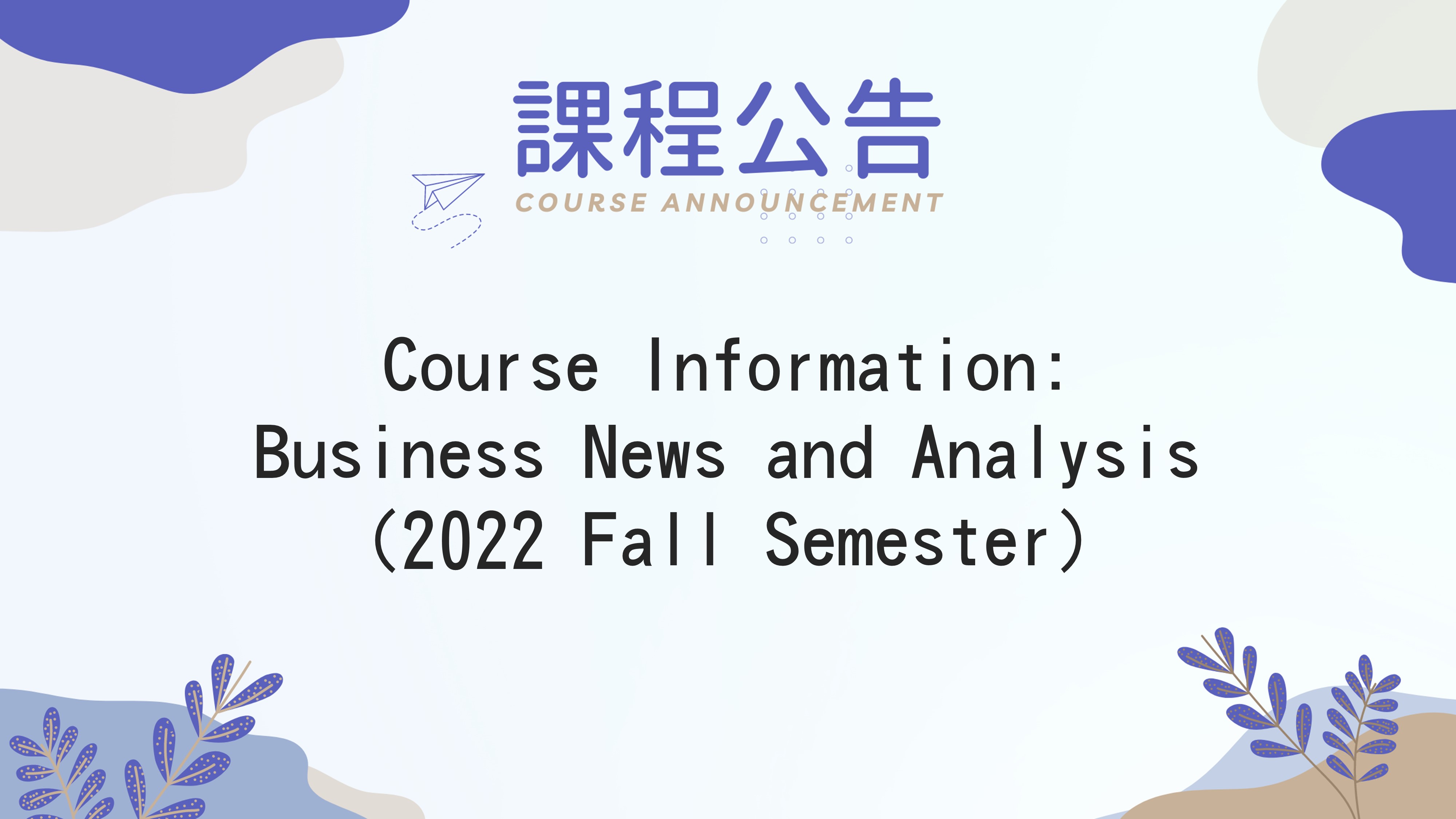 Course Information: Business News and Analysis (2022 Fall Semester)