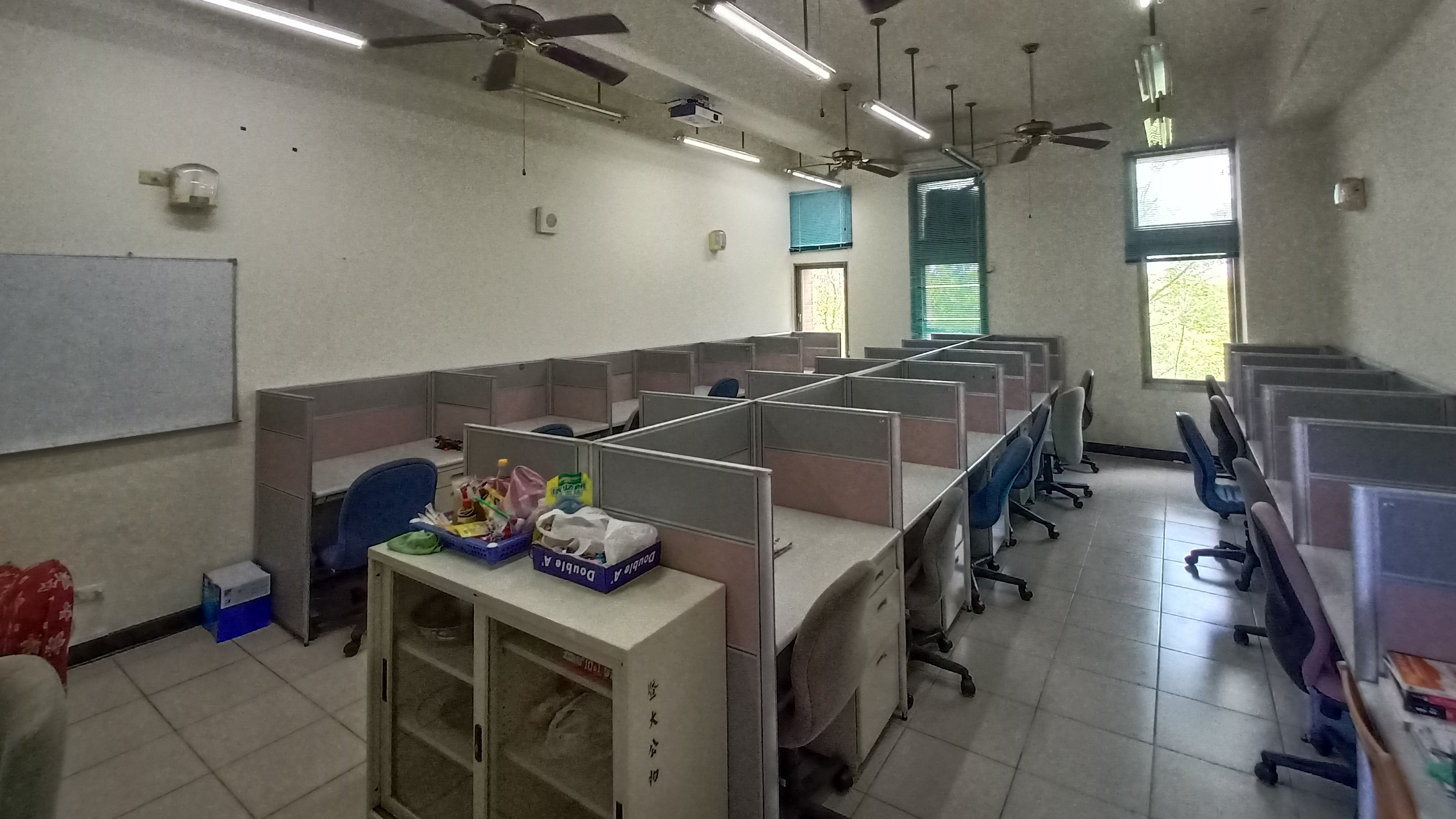 設備:鐵櫃*1、冰箱*1、白板*2、螢幕*2、主機*2、印表機*2、椅子*26、桌子*16、桌板*8、活動櫃*8、電腦桌*2、電風扇*1、IP分享器*3、電話*1、OA*1、防潮箱*1、塑膠架*1