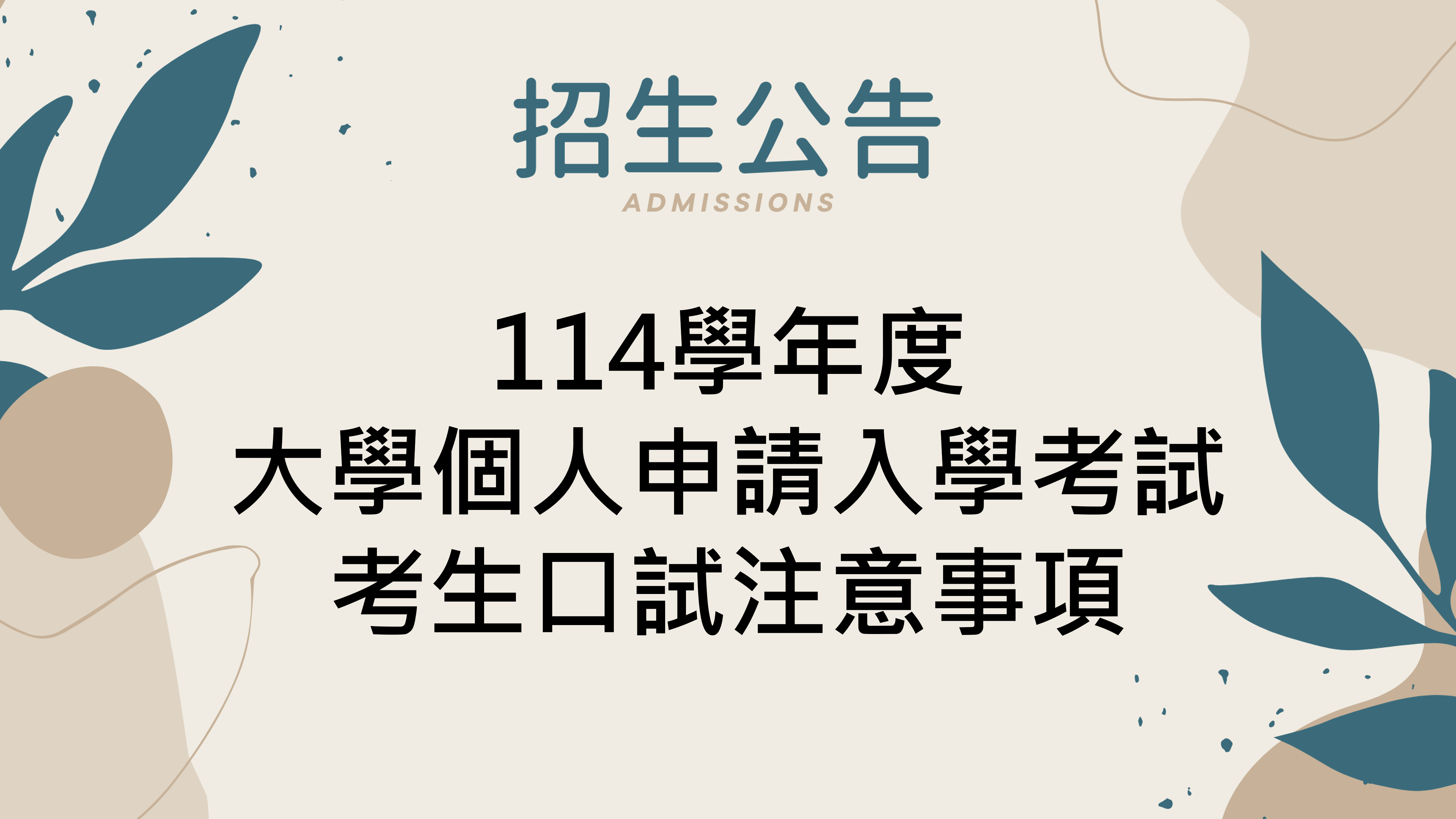 114學年度大學個人申請入學考試考生口試注意事項
