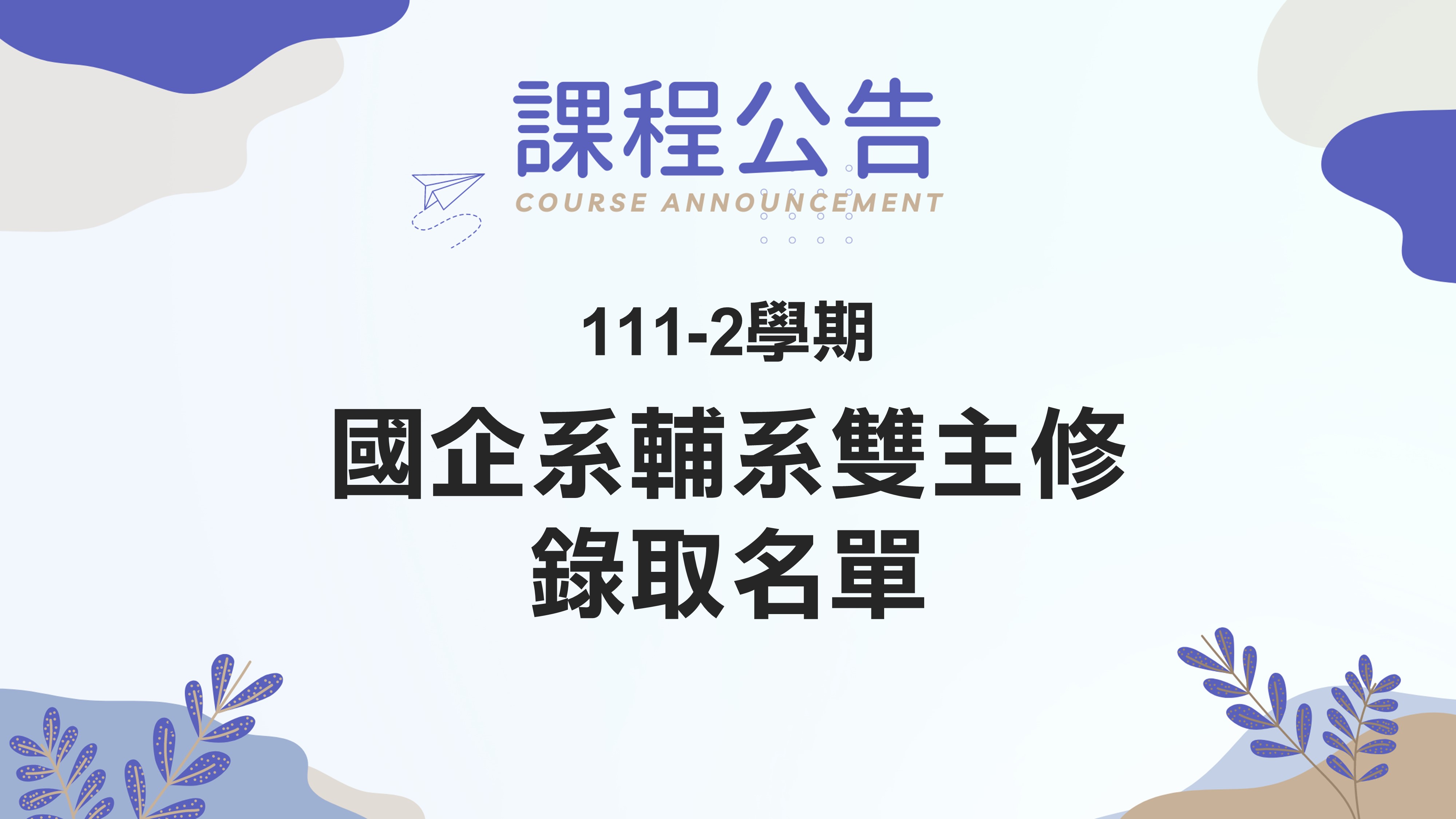 1112學期國企系輔系雙主修錄取名單